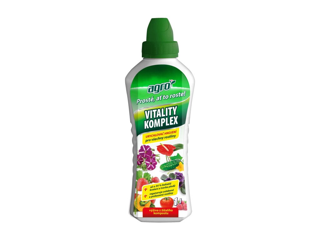 AGRO Vitality komplex je skvělým přípravkem obsahujícím enzymy a stimulační látky ze zažívacího traktu žížal usnadňují (zrychlují) transport živin z půdy do rostlin i procesy v rostlinách, zlepšují využití živin z půdy a pomáhají ke zvětšení kořenové plochy, následně i nadzemní části rostliny. Huminové a fulvinové kyseliny omezují únavu půdy a její vyčerpání, vytváří podmínky pro tvorbu humusu, zpřístupňují živiny pro rostliny. Tento skvělý pomocník má všestranné použití zejména pro drobné ovoce, zeleninu, okrasné i ostatní rostliny na zahradě, včetně všech druhů pokojových rostlin. Také je vhodný pro oslabené, nerostoucí a zanedbané rosliny. Zároveň urychluje regeneraci rostlin po poškození chorobami a škůdci.