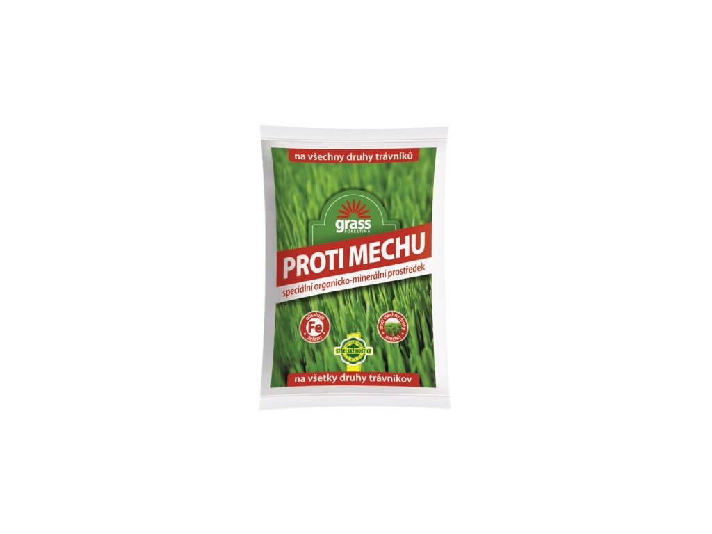 GRASS proti mechu je speciální organicko-minerální prostředek určený k údržbě trávníků s nežádoucím výskytem mechu. Důležitým prvkem obsaženým v přípravku je železo, které má hlavní zásluhu na vymizení mechu z trávníků. Jeho jedinečné složení a jemná granulace umožňují bezproblémovou, rovnoměrnou aplikaci. Přípravek se používá na jaře a dle potřeby se aplikace opakuje po 3-5 měsících.
